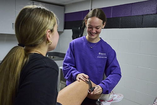 At the center of the program is athletic trainer, Hailey Phelps, MAT, LAT, ATC, who spends most of her time at the school. Whether it’s a sprained ankle at practice or a question about recovery, students know they can come to her first. She provides immediate care and guidance, and when needed, works hand-in-hand with other providers to connect athletes to specialized treatment.